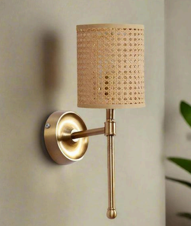 Rattan + Metal Brass Coated Wall Lamp - Ekreeti